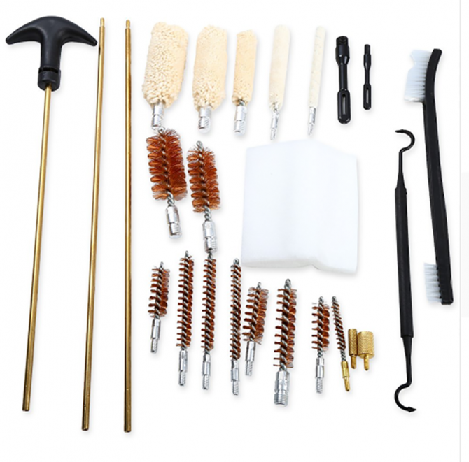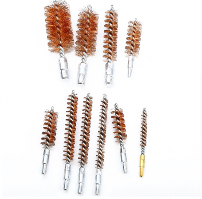 Dažāda izmēra birstes un tīrīšanas uzgaļi dažādiem ieroču kalibriem