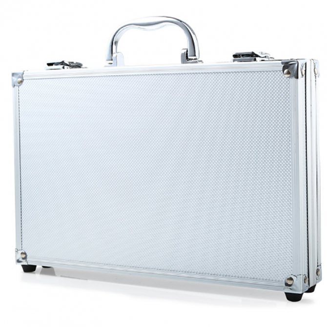Komplekts ievietots izturīgā alumīnija koferī ar ērtu rokturi un drošiem aizdares mehānismiem. Iekšpusē visi piederumi ir kārtīgi sakārtoti speciāli veidotās ligzdās, kas nodrošina ērtu lietošanu un pasargā instrumentus no bojājumiem.