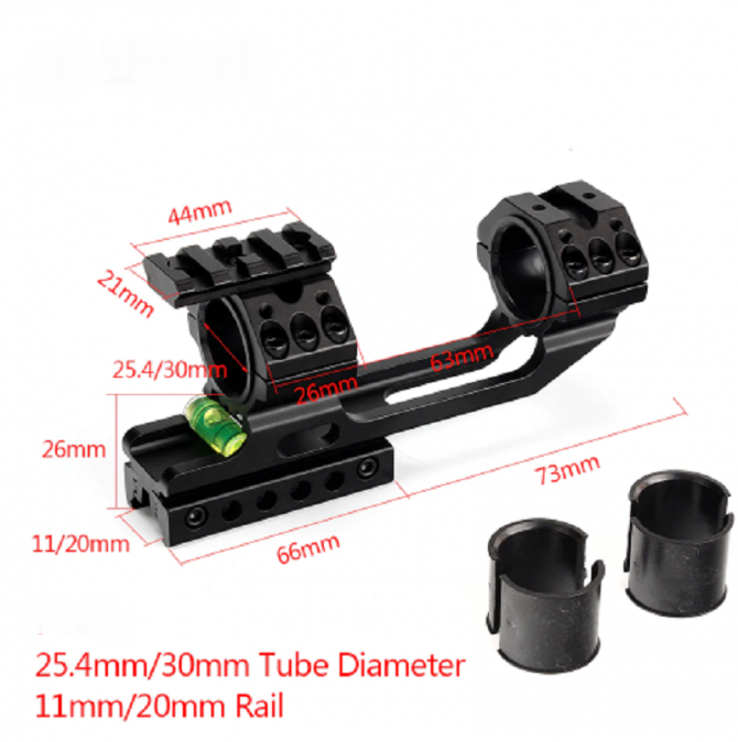Pateicoties papildus ieliktņiem derēs gan 30 gan 25 mm optikai.