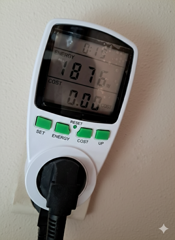 Šī ir elektrības patēriņa mērītāja (enerģijas skaitītāja) rozete, kas paredzēta elektroierīču patēriņa uzraudzībai mājas vai darbnīcas apstākļos.