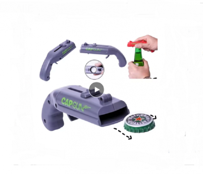 Korķu pistole - pudeles atvērējs CAPGUN ir inovatīvs un jautrs rīks alus pudelēm, kas ļauj droši un efektīgi izšaut korķi pudeles brāļu virzienā radot tajos iespaidīgu apjukumu. Tā apvieno praktisku funkcionalitāti ar izklaidējošu dizainu, padarot pudeles atvēršanu par neaizmirstamu mirkli.